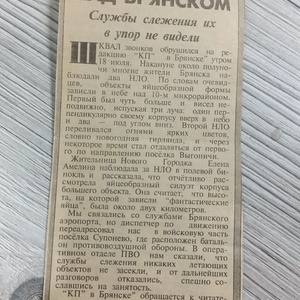 Это произошло в 2001 году. Сам я к сожалению данное явление не наблюдал. В газете Комсомольская правда вышла заметка о наблюдении НЛО. Плюс мне об этом сообщил один знакомый. А в 2004 году я нашел у себя эту заметку и решил перепроверить на сколько это было возможно на тот момент. Я позвонил в редакцию КП и хотел связаться с автором данной заметки. Но к сожалению он от туда уволился. Но мне сообщили что человек теперь выпускает свою газету. Называлась она "Конфетка". А автора данной статьи зовут Наталья Тимченко. Купив газету я посмотрел адрес и телефон редакции. Позвонив туда я как раз и пообщался с Натальей. Она мне сообщила что непосредственным очевидцем данного явления был водитель редакции КП который поздно возвращался домой. И после ещё в редакцию звонила одна женщина. Я не помню честно говоря почему, но дальше я не стал искать уже самого водителя и других свидетелей.